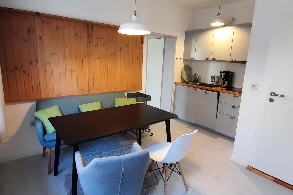 Ein helles Nichtraucher-Apartment mit offener Wohnküche und gemütliche Sitzecke. Alle Wohnungen erhielten im Frühjahr 2021 neue Möbel, Küchen sowie Fußböden und einen frischen Anstrich. Die Bäder haben nun moderne Thermostat-Mischbatterien.