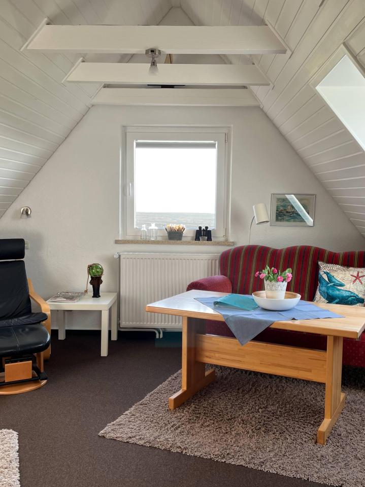 Das Apartment „Tjarko“ bietet Platz für bis zu 2 Personen auf etwa 40m². Das Apartment erstreckt sich über das gesamte Dachgeschoss des Hauses Witte Sand und besteht aus einem Schlafraum, einer Kochnische, Bad (Dusche/WC) sowie einem Wohnbereich. Das Apartment bietet Ihnen freie Aussicht über die Insel in alle vier Himmelsrichtungen. Das helle Wohnzimmer dieses Apartments bietet Ihnen freien Ausblick Richtung Süden und Westen durch zwei große Fenster. Der Schlafraum bietet Ihnen zwei Schlafplätze.