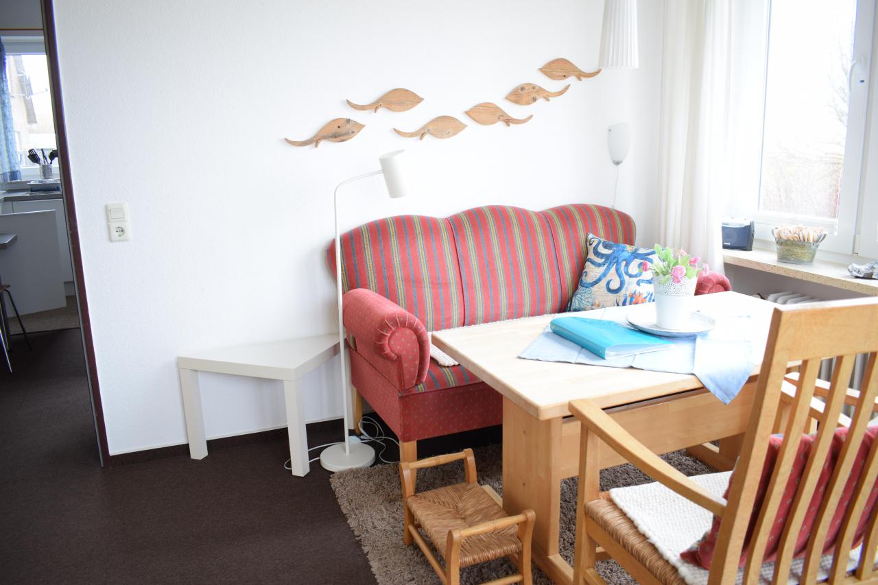 Unser Apartment „Onnen“ bietet Platz für bis zu 4 Personen auf etwa 55m². Die Wohnung liegt auf der Südseite des Hauses Witte Sand und besteht aus einem Schlafraum, einer Kochnische, Bad (Dusche/WC) sowie einem Wohnbereich mit hochwertigem Schrankbett.