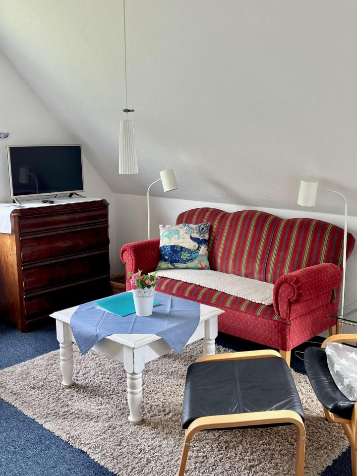 Im kombinierten Wohnschlafraum finden Sie einen kleinen Frühstückstisch sowie eine gemütliche Sitzecke. Nachts liegen Sie hier bequem auf hochwertigen Schrankbetten von Nehl; diese können am Tag hochgeklappt werden, um den Platz im Wohnzimmer effektiv zu nutze