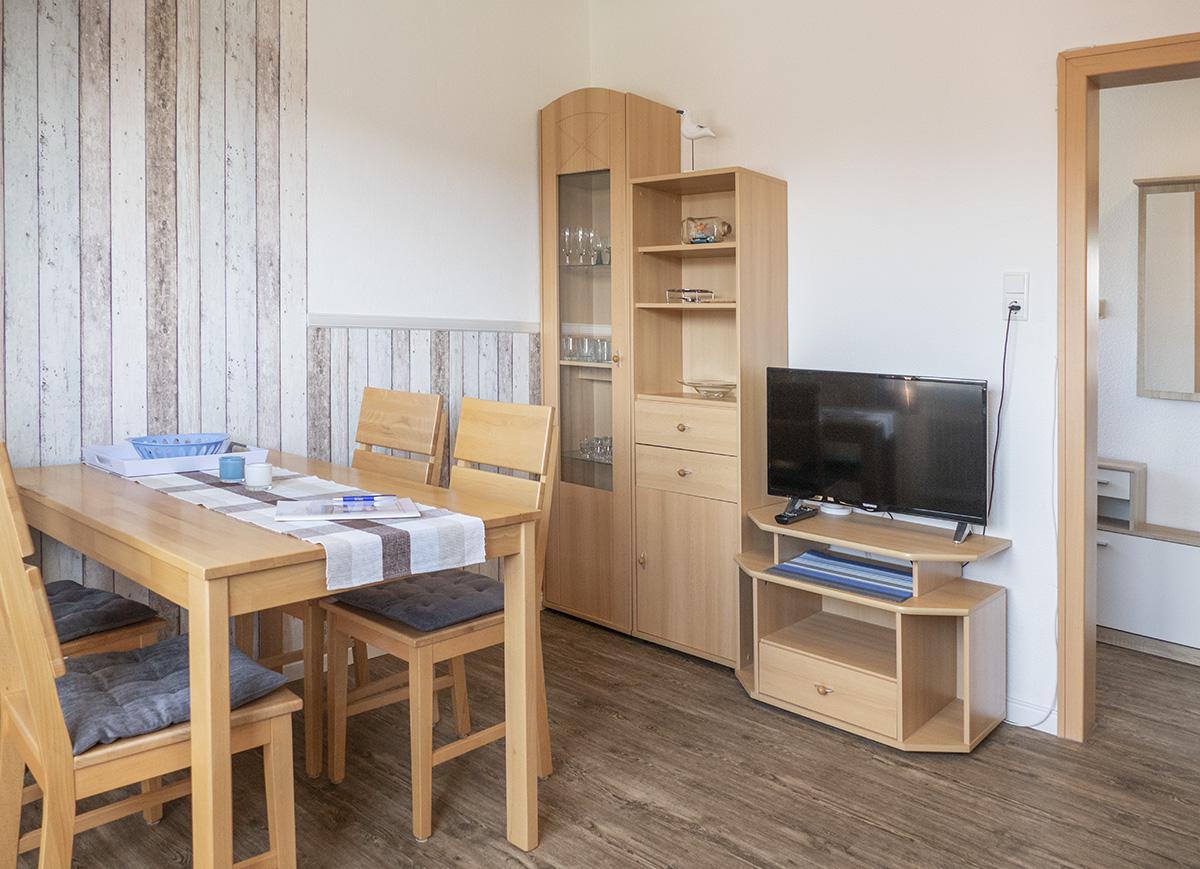 Neue Küche mit Mikrowelle und Spülmaschine, 2 Schlafräume, Wohnraum mit Essplatz & Sitzgruppe, 2x Dusche/WC, Radio, Sat-TV, direkter Deichblick, Sonnenterrasse am Haus, Zentrale Lage an der Strandpromenade, WLAN