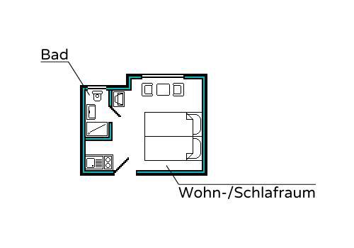 Wohn-Doppel-Schlafraum mit Essplatz und Sitzgruppe, neue Küche mit Mikrowelle, Dusche/WC, Sat-TV, Sonnenterrasse am Haus, Zentrale Lage direkt an der Strandpromenade, Neu in 2023: Neu gestaltet mit Boxspringbetten (1,60 mal 2,00)