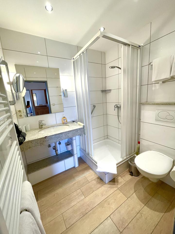 Die komplett renovierte Ferienwohnung liegt im ersten Stock mit Wohn-Schlafzimmer (Schrankbetten), separates Schlafzimmer mit neuen Boxspringbetten sowie eigenem Waschbecken und Balkonzugang, neue Küche mit Spülmaschine, renoviertem Badezimmer und Flur.