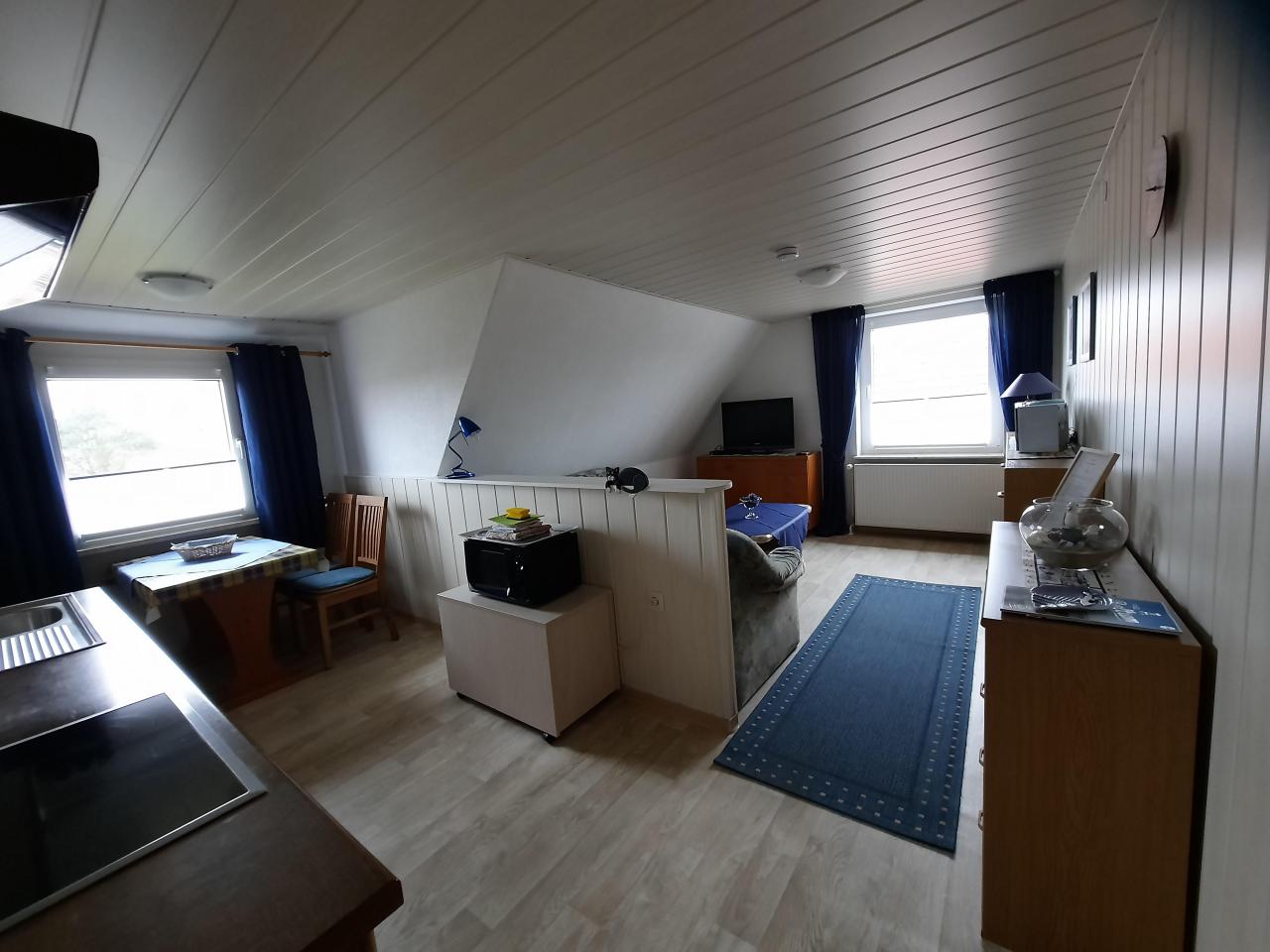 1 Schlafraum, 1 Wohn/Schlafraum mit Küchenzeile, Eßecke & Sitzgruppe, Dusche/WC