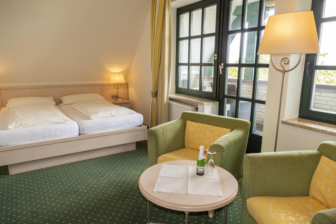 Hochwertige Doppelzimmer mit Loggia, Haarfön im Bad, Minibar, Safe, Schreibtisch. Restaurant im Haus.