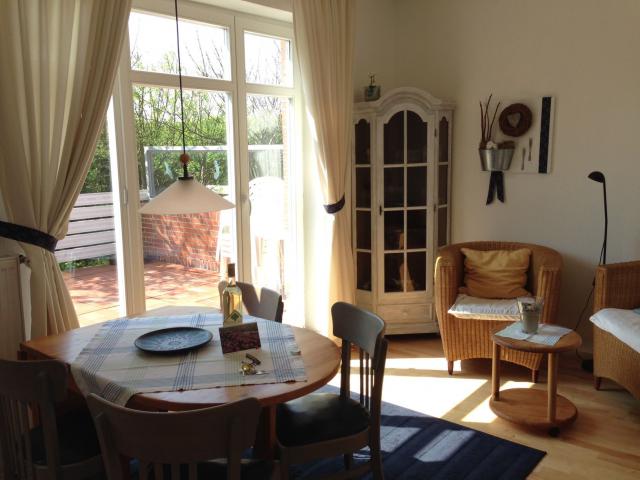 Diese helle Wohnung verfügt über 1 Wohnraum mit Essplatz und komplett ausgestattete Küchenzeile, 3 gemütliche Schlafräume sowie ein Duschbad mit WC. Sie ist mit Parkett ausgelegt. Die Terrasse kann vom Wohnraum aus betreten werden und ist mit einem Strandkorb und Gartenmöbeln ausgestattet.